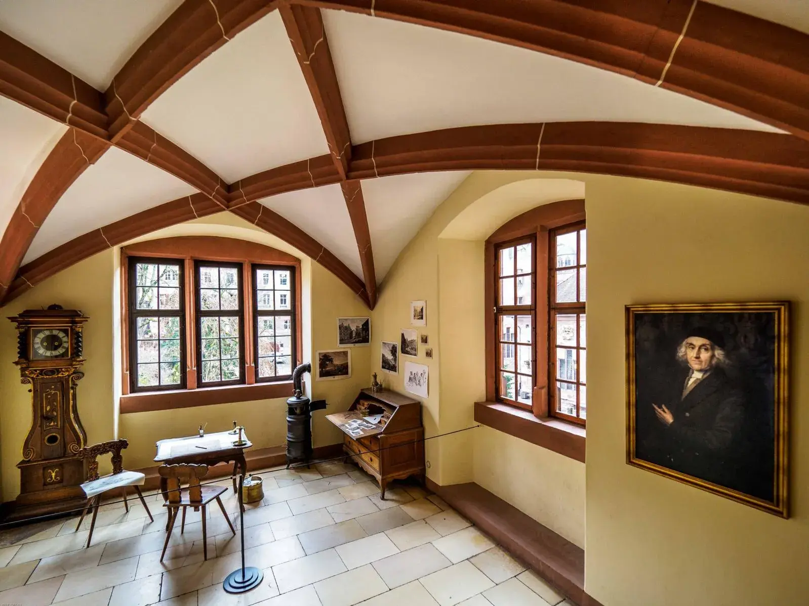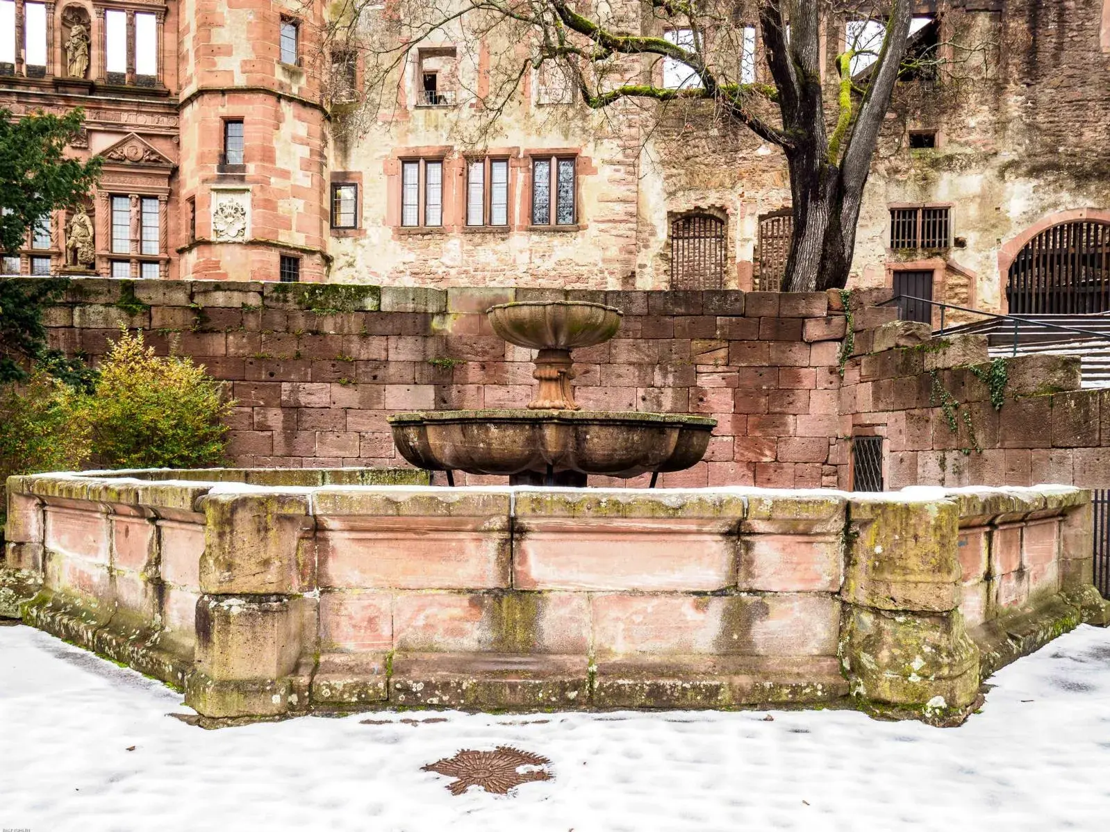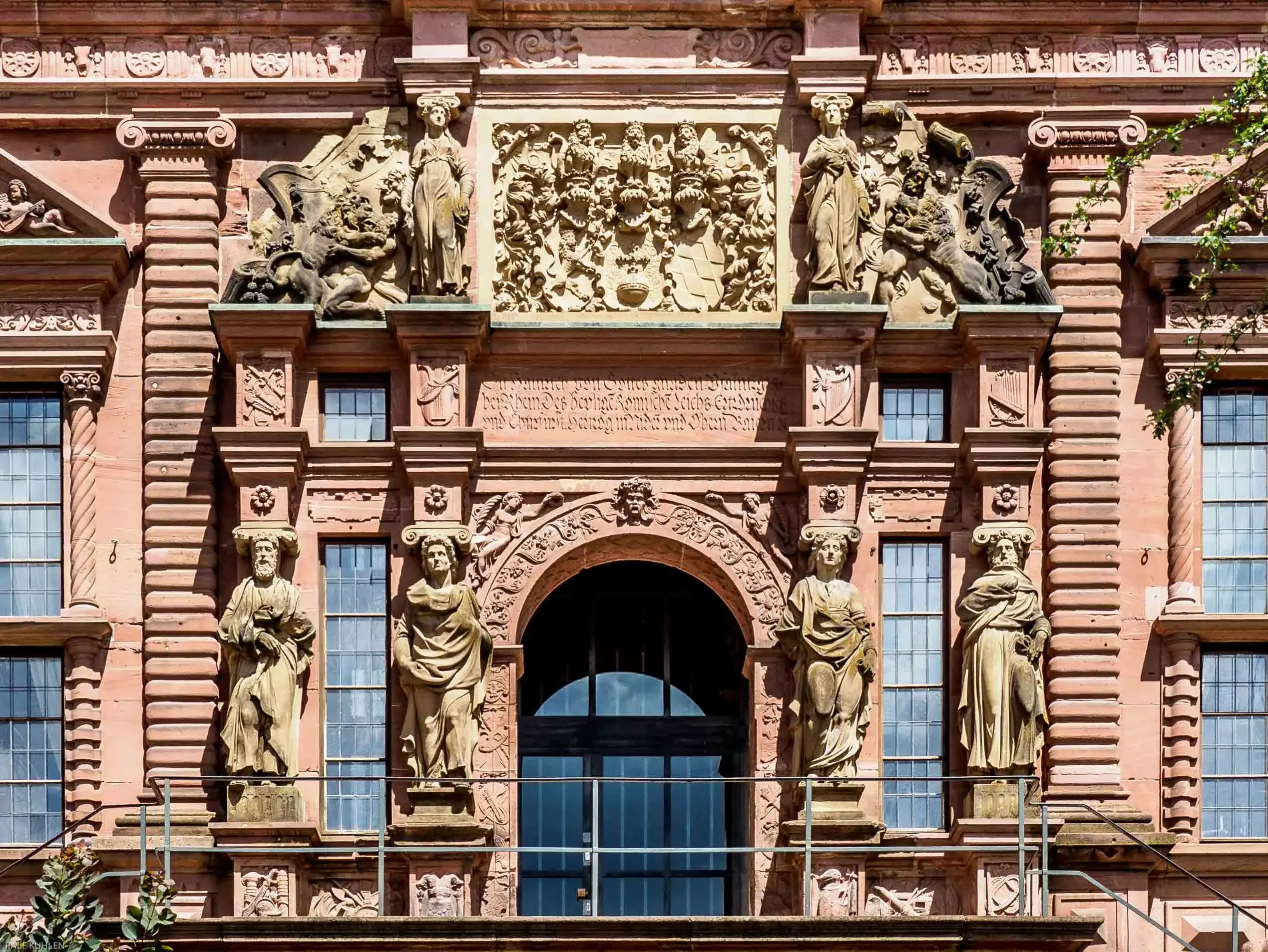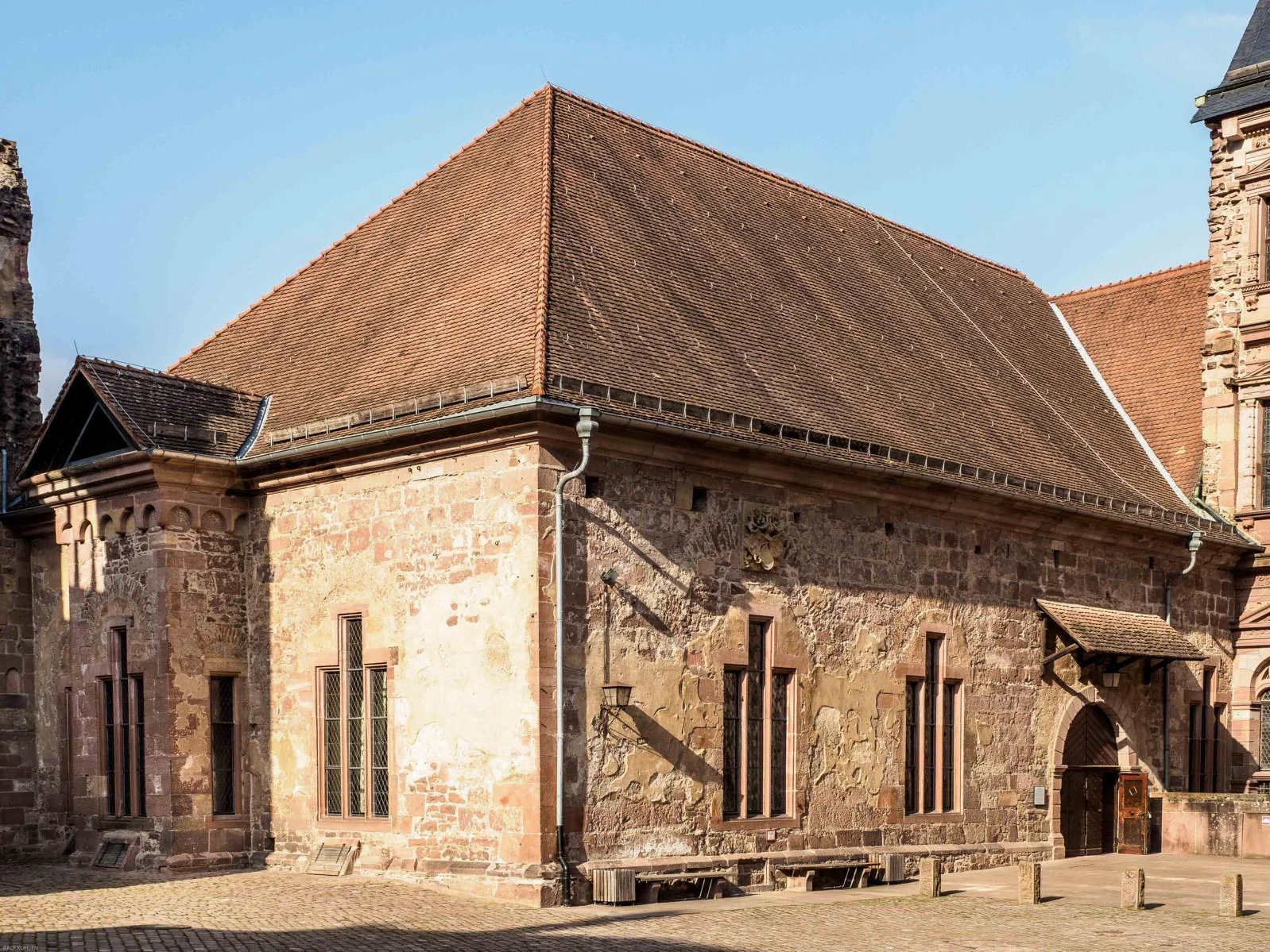 Die Schatztruhe aus dem zweiten Stockwerk des Friedrichsbaus, ist noch ein Originalstück aus der Zeit der deutschen Renaissance, gegen 1600. Sie scheint ehemals aus habsburgischen Kreisen zu stammen, wie man am Doppeladler an der Frontseite erkennen kann. Die beiden Adler tragen zwischen sich die Kaiserkrone. Interessant ist das Innere des Deckels. Es entpuppt sich als ein komplexes Schließsystem. Von einem zentralen Schlüssel gesteuert, schieben sich ungefähr dreißig Bolzen unter den Eisenrahmen. Sie werden angetrieben durch ein komplexes System von Federn und Scharnieren.