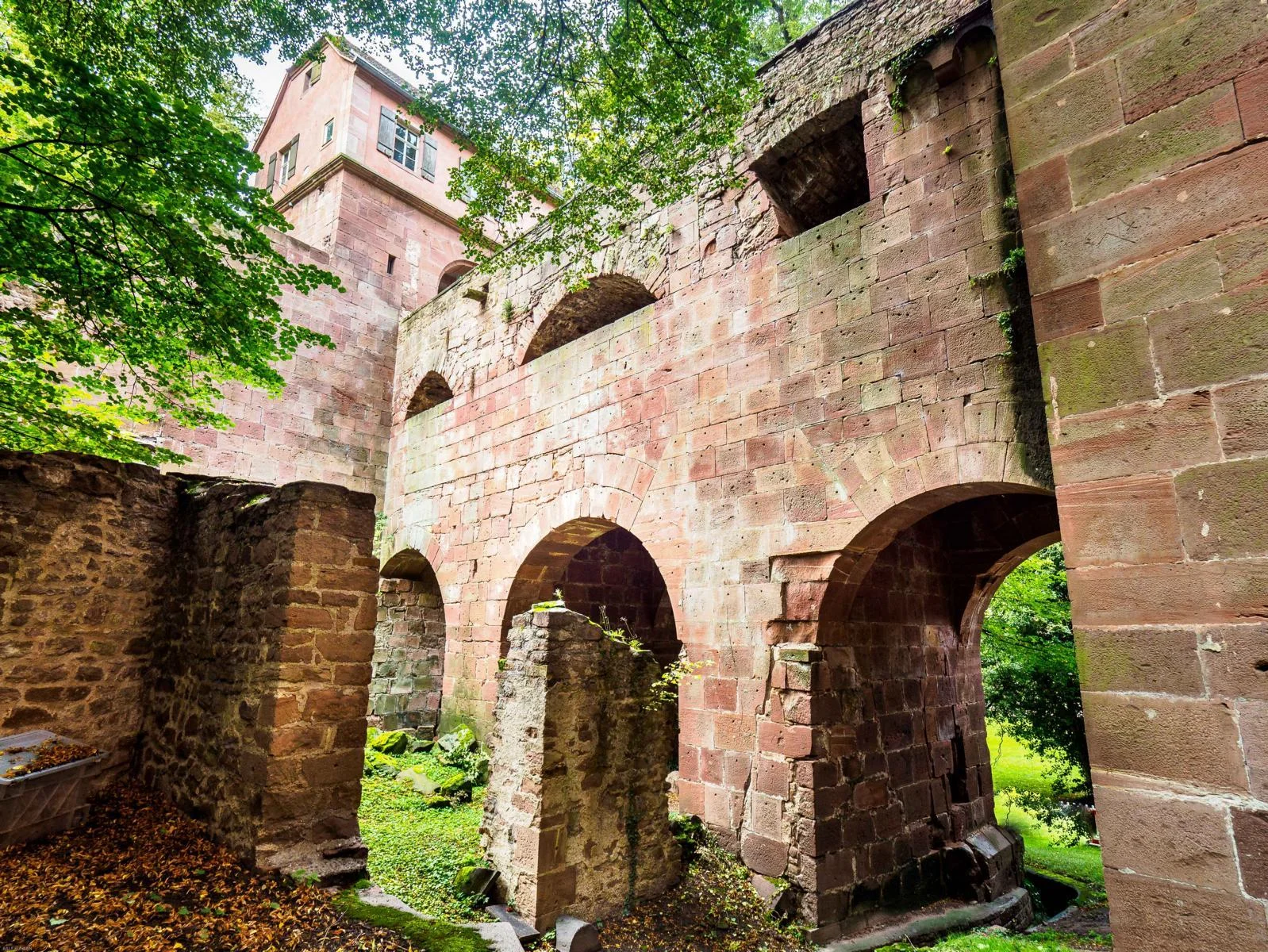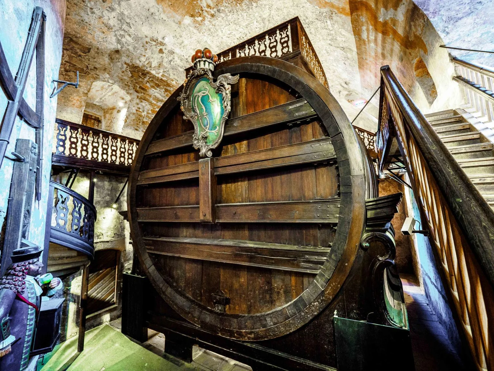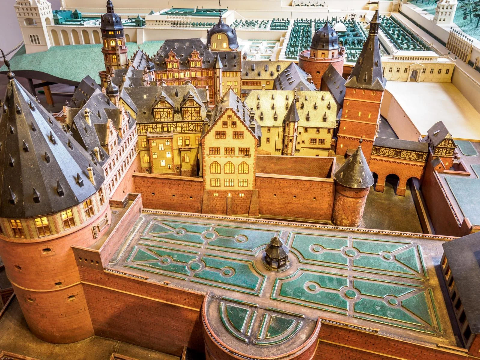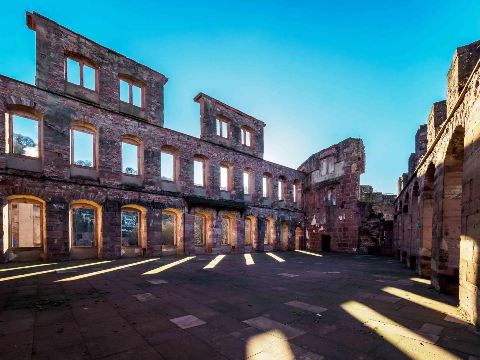 Die Schatztruhe aus dem zweiten Stockwerk des Friedrichsbaus, ist noch ein Originalstück aus der Zeit der deutschen Renaissance, gegen 1600. Sie scheint ehemals aus habsburgischen Kreisen zu stammen, wie man am Doppeladler an der Frontseite erkennen kann. Die beiden Adler tragen zwischen sich die Kaiserkrone. Interessant ist das Innere des Deckels. Es entpuppt sich als ein komplexes Schließsystem. Von einem zentralen Schlüssel gesteuert, schieben sich ungefähr dreißig Bolzen unter den Eisenrahmen. Sie werden angetrieben durch ein komplexes System von Federn und Scharnieren.
