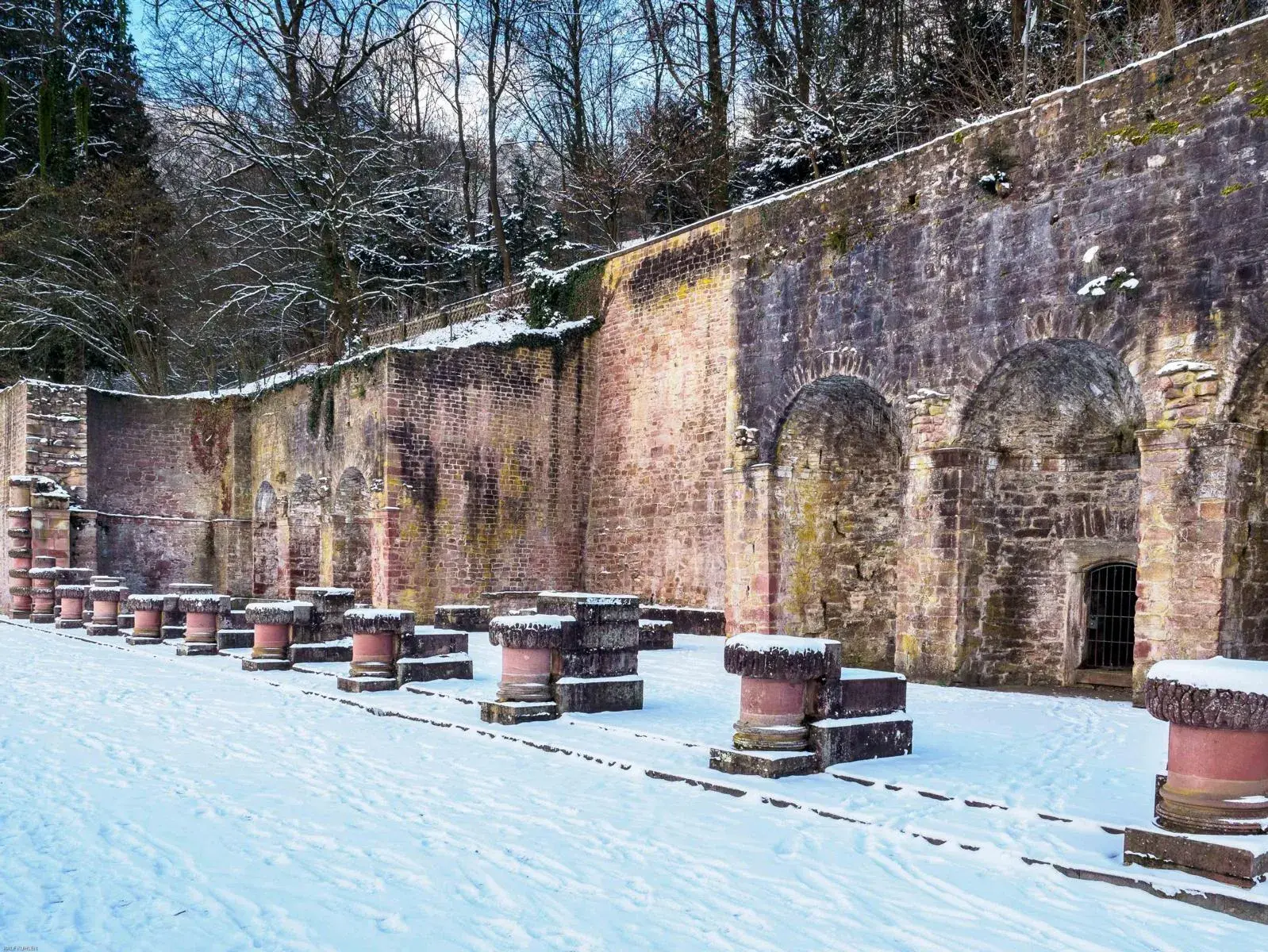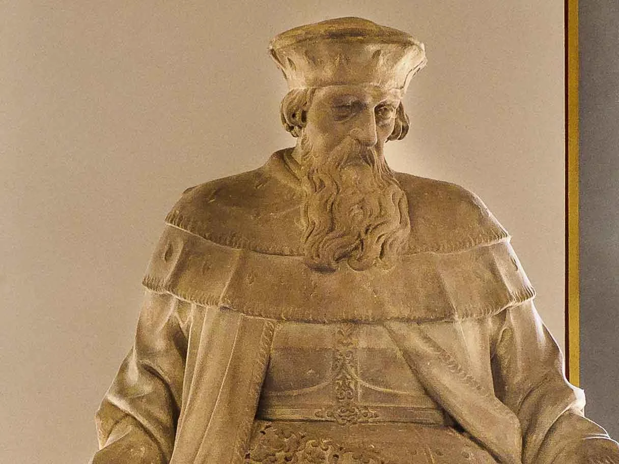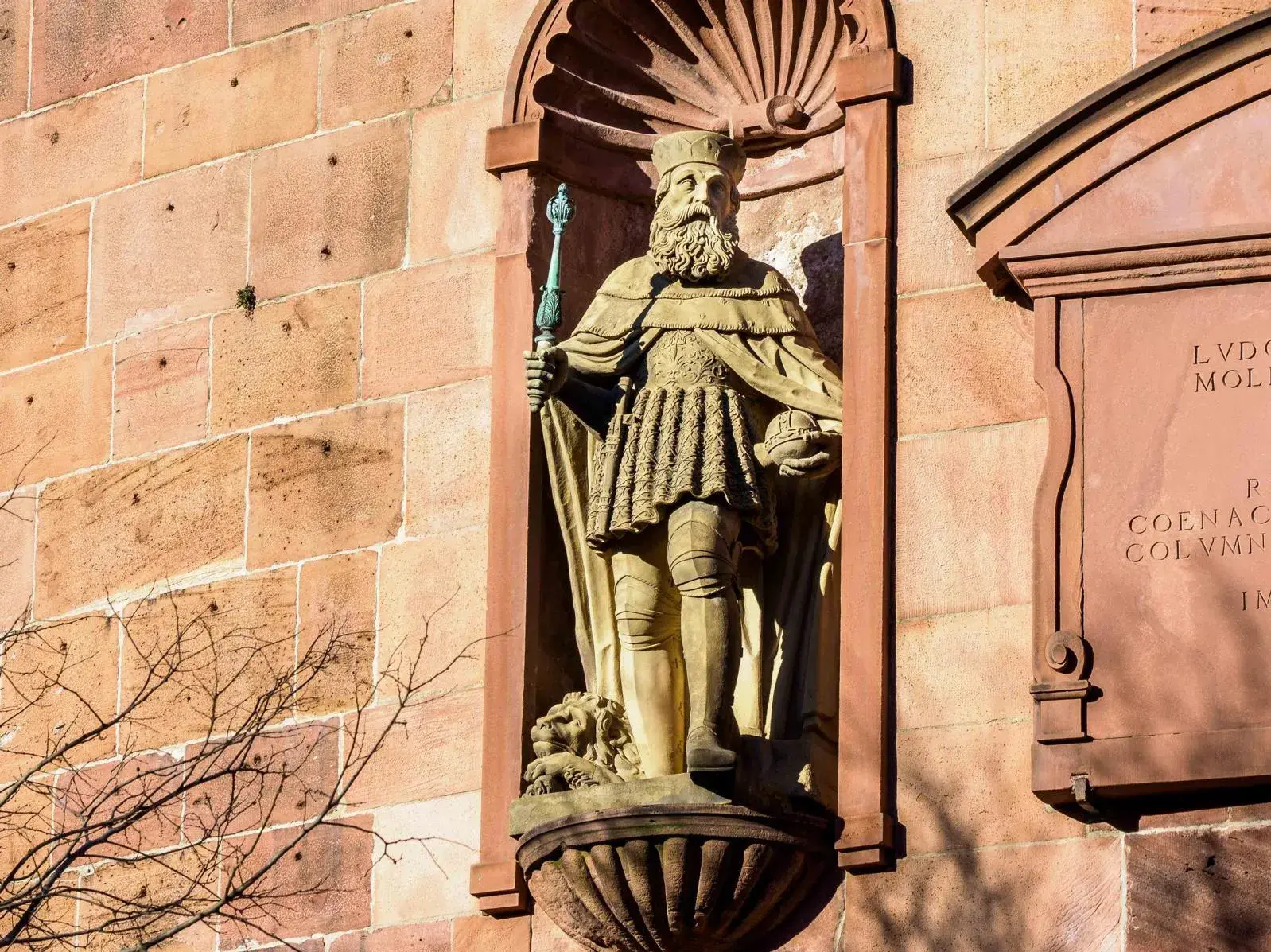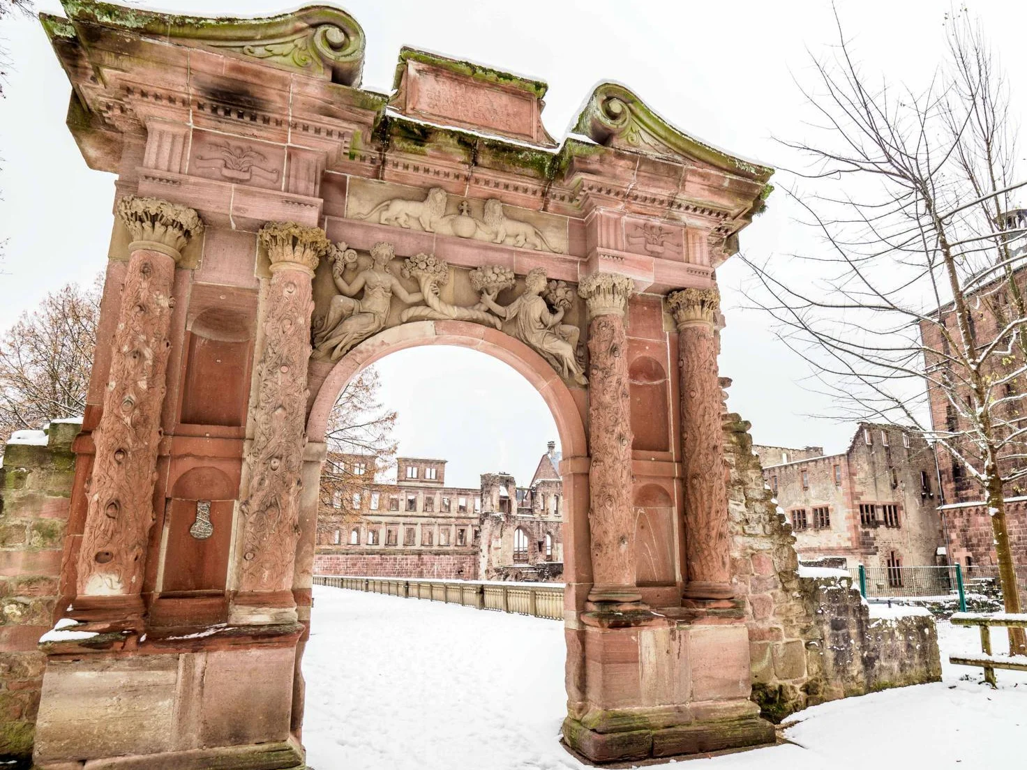 Die Schatztruhe aus dem zweiten Stockwerk des Friedrichsbaus, ist noch ein Originalstück aus der Zeit der deutschen Renaissance, gegen 1600. Sie scheint ehemals aus habsburgischen Kreisen zu stammen, wie man am Doppeladler an der Frontseite erkennen kann. Die beiden Adler tragen zwischen sich die Kaiserkrone. Interessant ist das Innere des Deckels. Es entpuppt sich als ein komplexes Schließsystem. Von einem zentralen Schlüssel gesteuert, schieben sich ungefähr dreißig Bolzen unter den Eisenrahmen. Sie werden angetrieben durch ein komplexes System von Federn und Scharnieren.